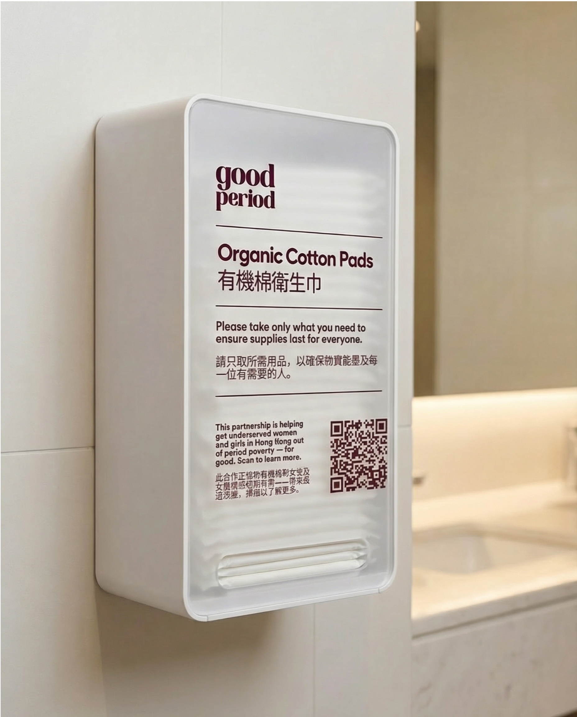 Over the years, we pioneered access to free menstrual products in workplace washrooms, partnering with over 150 leading organizations — including HSBC, Goldman Sachs, and Cathay Pacific — and supplying more than 3,000 washrooms.